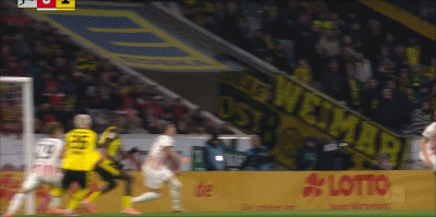 第31分鐘,本塞拜尼亂戰(zhàn)中搶射破門,多特1-0弗賴堡