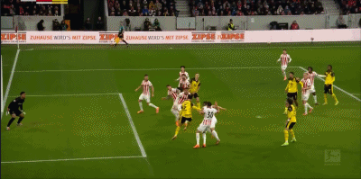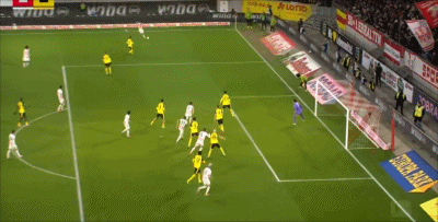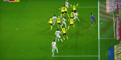 第17分鐘,多特右路傳中,吉拉西頭球攻門頂高