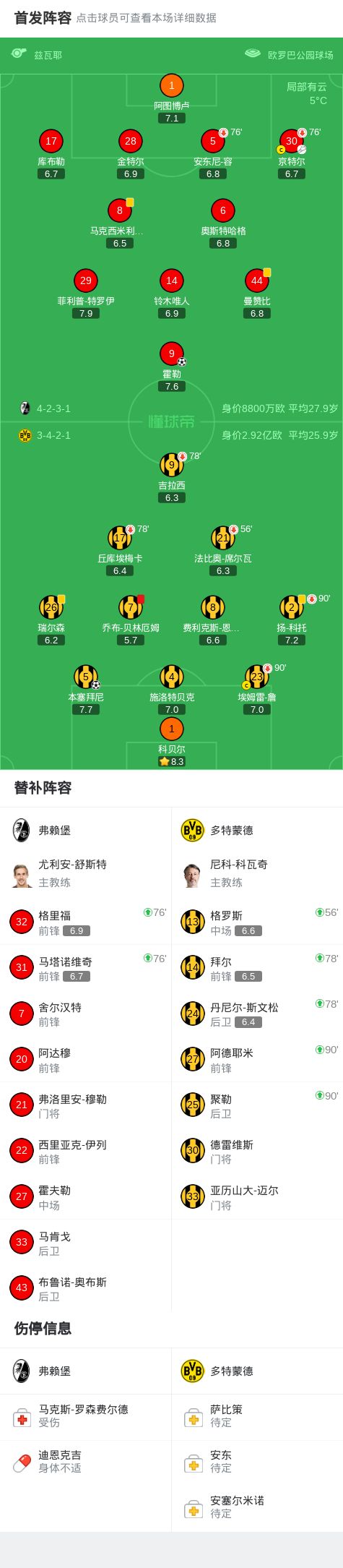 劍南春丨弗賴堡1-1十人多特,本塞拜尼破僵,霍勒瀟灑扳平